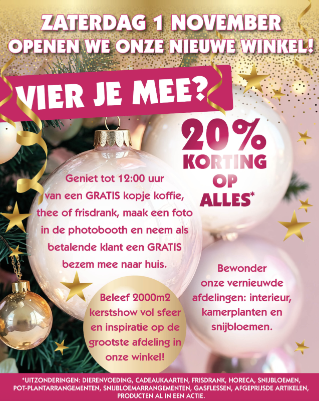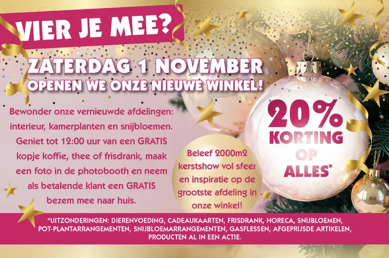 Dubbel feest dus – en jij bent van harte uitgenodigd. Kom langs, geniet van de vernieuwde winkel, proef de kerstsfeer en laat je verrassen door alles wat nieuw is.