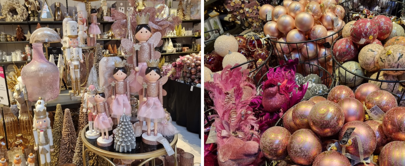 Oh là là, wat een stijl! Noël à Paris brengt Franse elegantie en romantiek in huis. Denk aan zachte tinten als wolwit, blush pink en nachtblauw, gecombineerd met goud voor die subtiele Parijse glans. Balletschoentjes, Eiffeltorens en sierlijke linten zorgen voor die herkenbare Franse charme. Het geheel is chique, maar niet te stijf – meer “Parijs in de sneeuw” dan “museumzaal in stilte”. Perfect voor wie houdt van een vleugje glamour zonder overdaad. Met Noël à Paris wordt je woonkamer een Franse kerstfilm: romantisch, verfijnd en natuurlijk très chic.