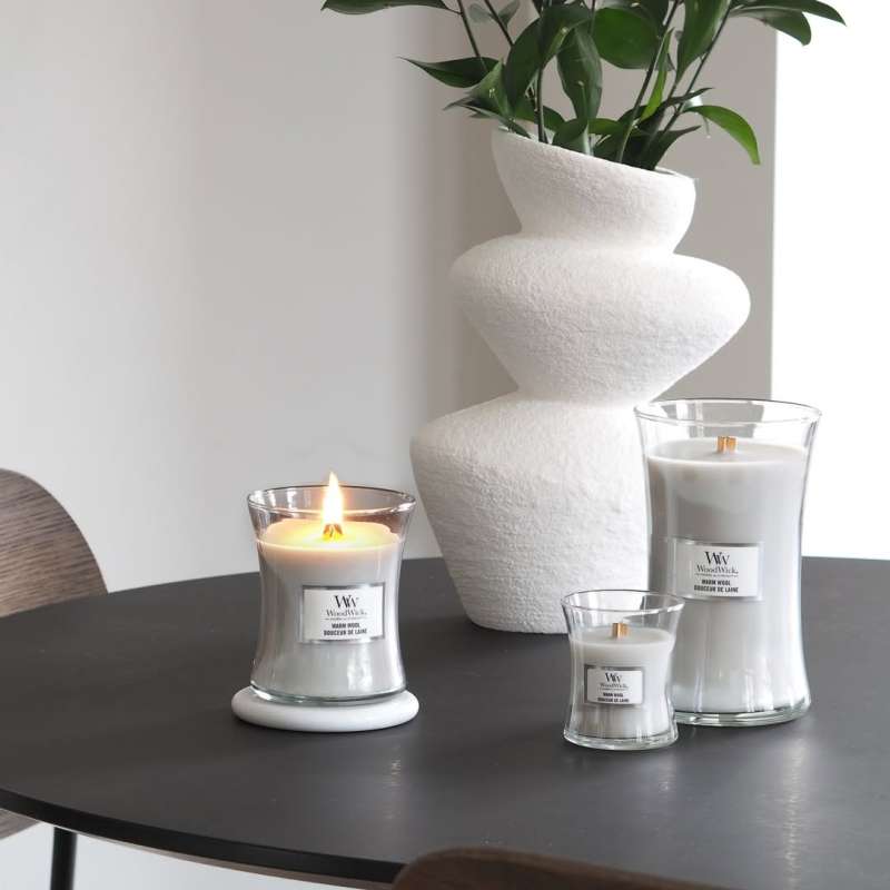 WoodWick past in vrijwel elke woonstijl. Modern, landelijk, industrieel of klassiek — de glazen potten zijn strak en tijdloos vormgegeven. Zelfs wanneer de kaars niet brandt, staat hij al mooi in je interieur.
