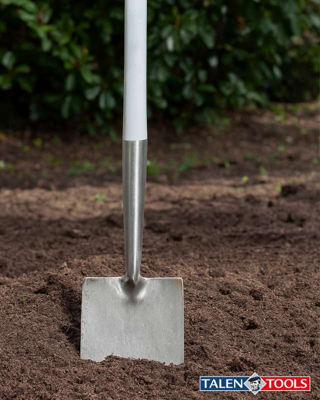 Als de spade rechtop staat, moet de steel ongeveer tot je navel komen voor de beste werkhouding.