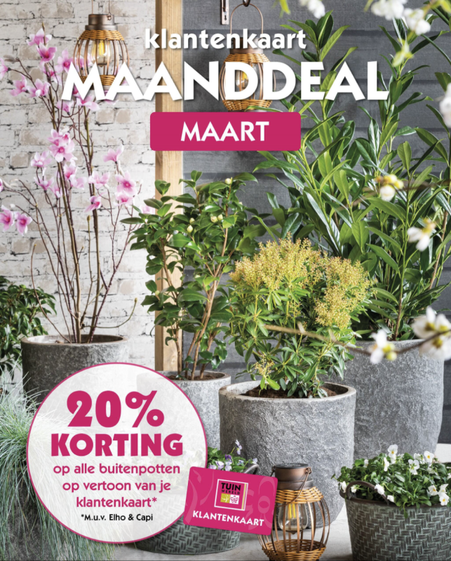 Met een geregistreerde klantenkaart profiteer je iedere maand van exclusieve maandacties. Deze zijn direct geldig vanaf het moment dat je jouw klantenkaart hebt geregistreerd. De actuele acties van de maand vind je op deze pagina én op onze aanbiedingen pagina!