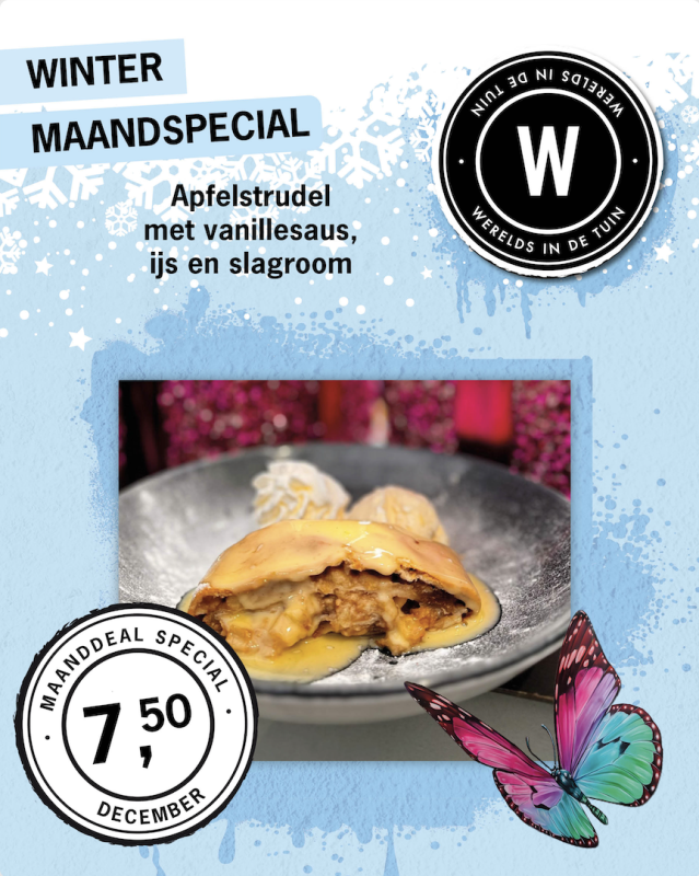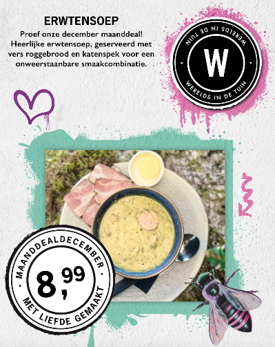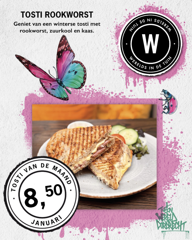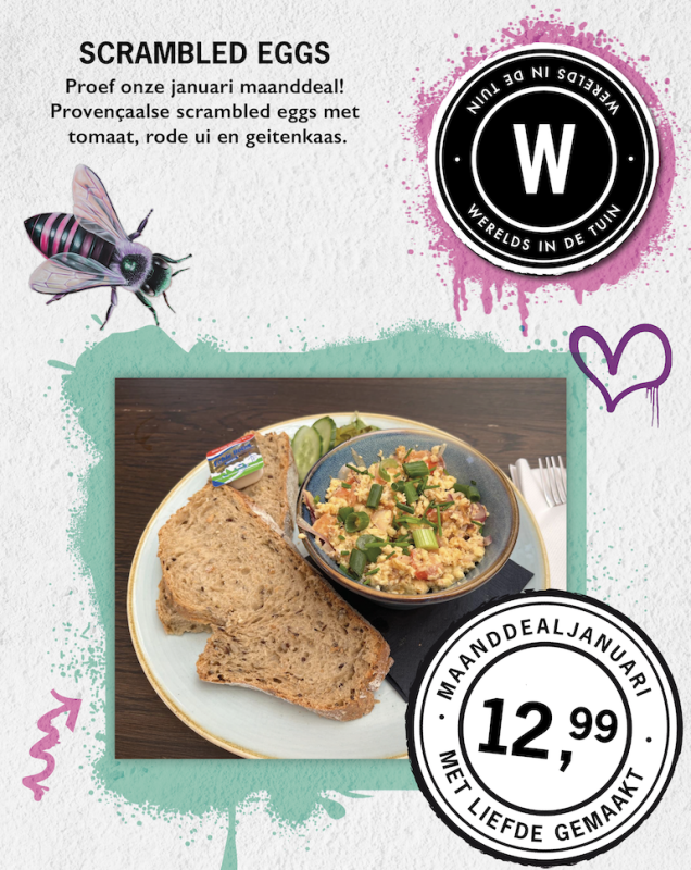 Tijdens jouw bezoek aan TuinWereld Dordrecht kun je even stoppen bij restaurant Werelds in de tuin. Start de dag met een heerlijk ontbijtje of geniet in de middag van een goede lunch. In ons restaurant kun je terecht voor onder andere: